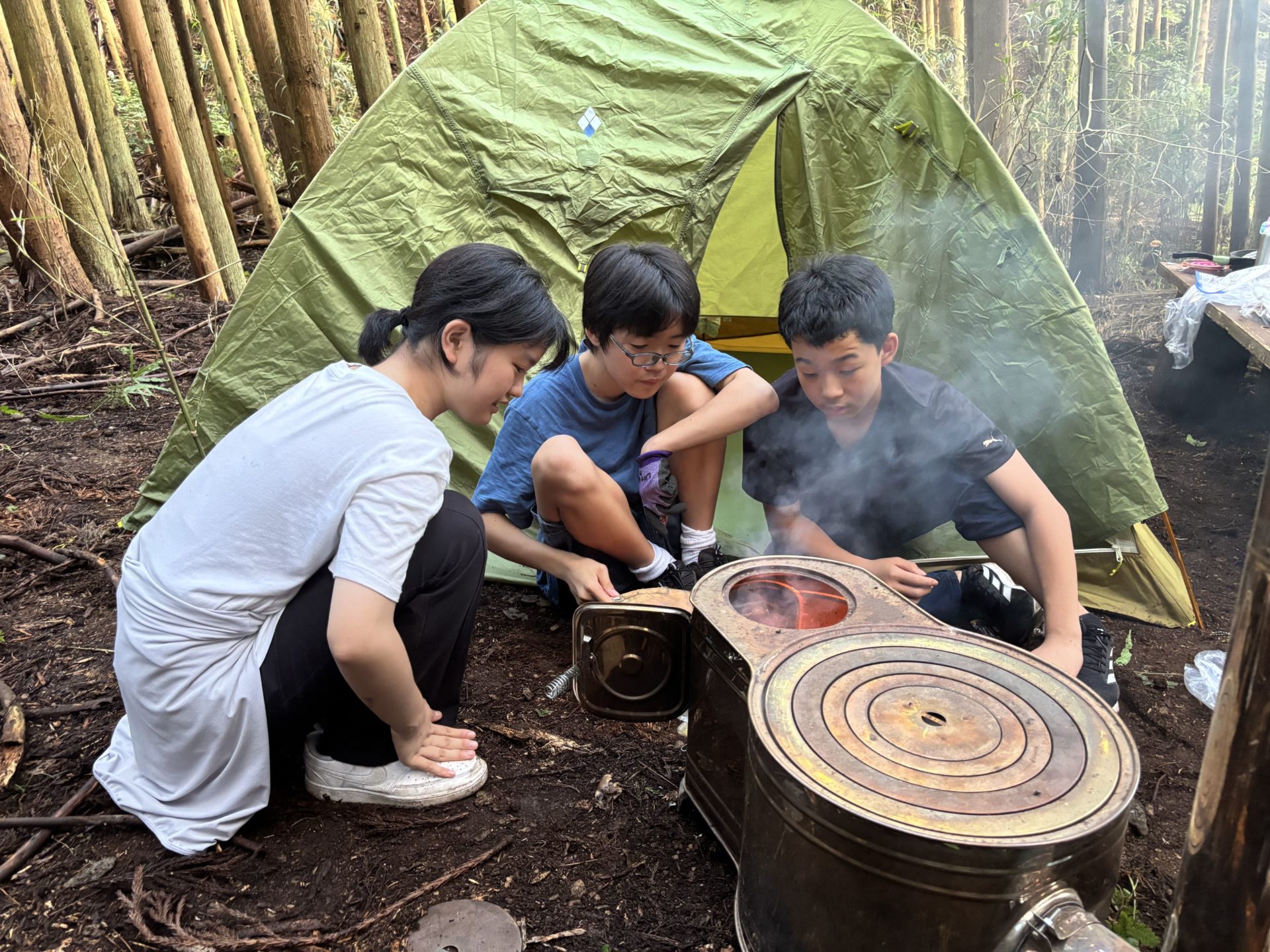 火を起こし、自然の中で一晩を過ごすキャンプ体験。