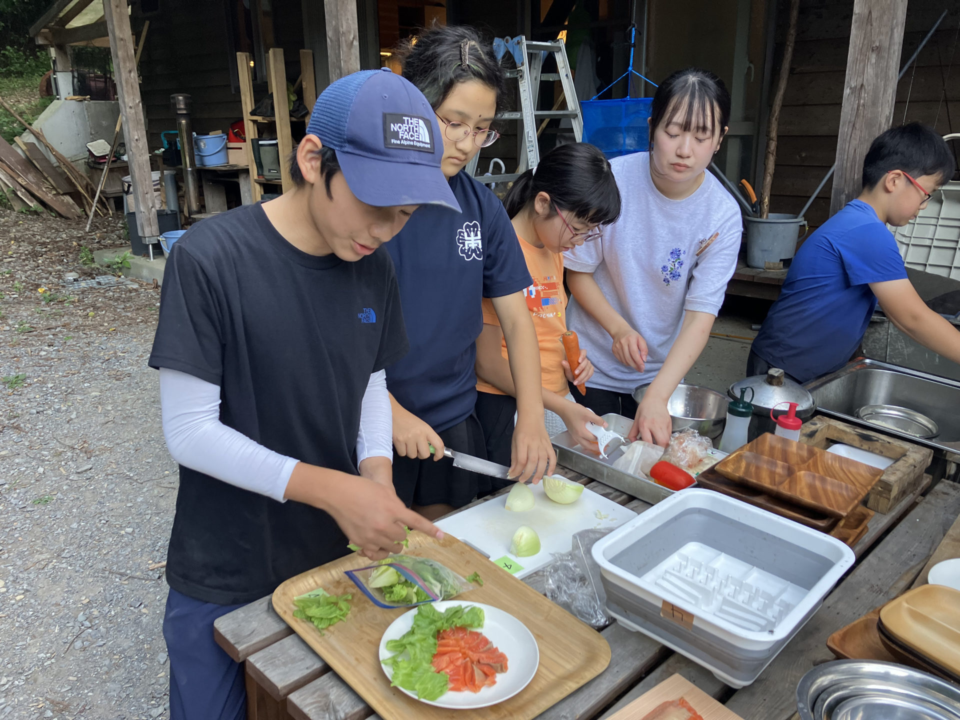 朝・夜のごはんづくり、調理やお風呂に使う燃料集めなど、生活を支える一つひとつを仲間と協力しながら進めていきます。